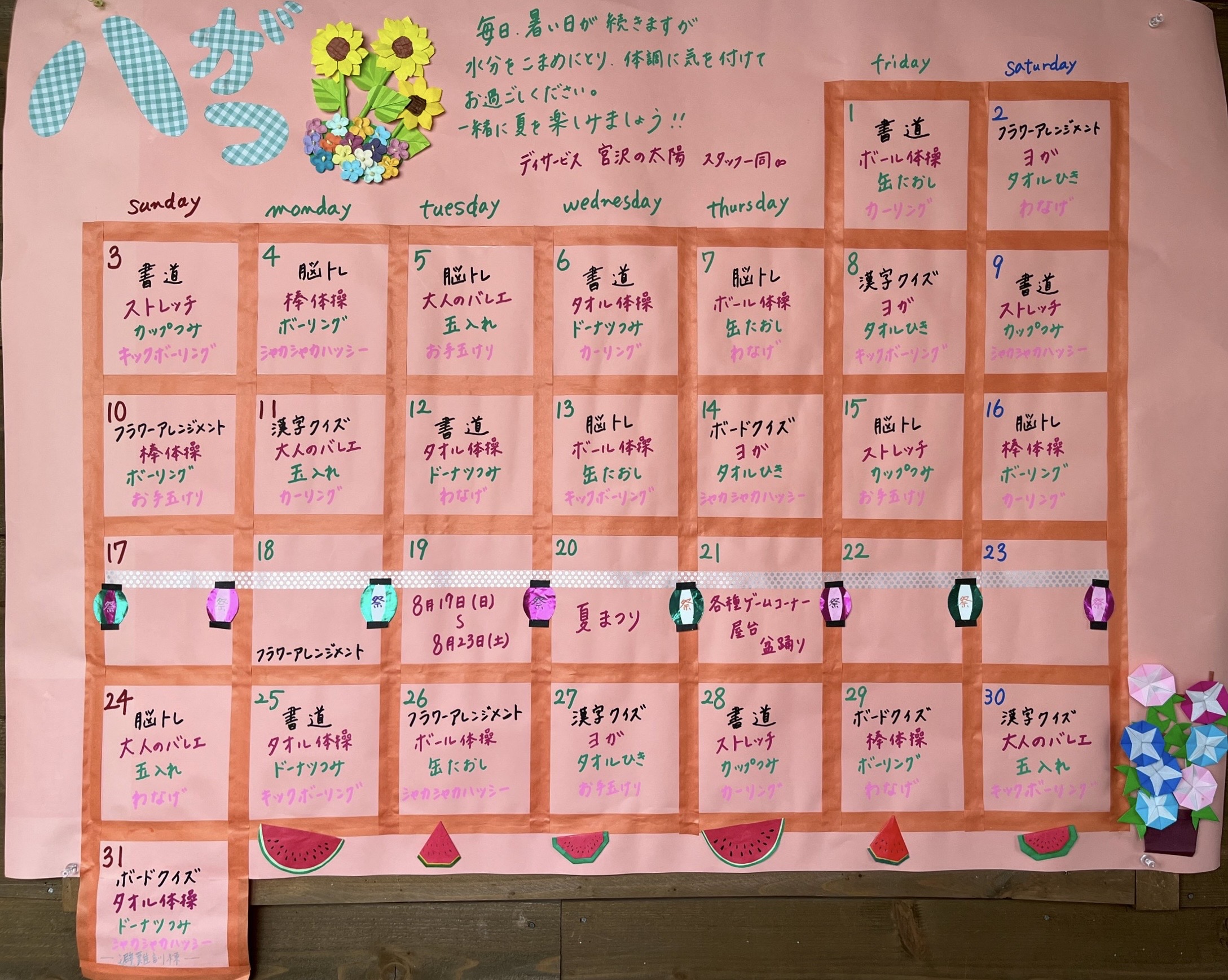 7月も暑さが続きます。水分補給を忘れずに、どうぞ元気にお過ごしください。